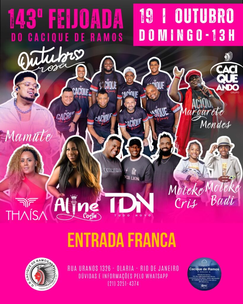 Cacique de Ramos realiza 143ª Feijoada com grandes atrações e apoio ao Outubro Rosa
