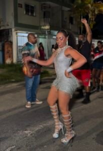 A Renascer de Jacarepaguá realizou seu primeiro ensaio de rua do ano no bairro do Tanque, na Zona Oeste do Rio de Janeiro, e contou com a presença de sua rainha de bateria, Elaine Caetano, que completa cinco anos à frente dos ritmistas comandados pelo mestre Felipe D’Lelis.