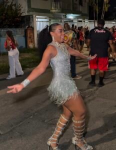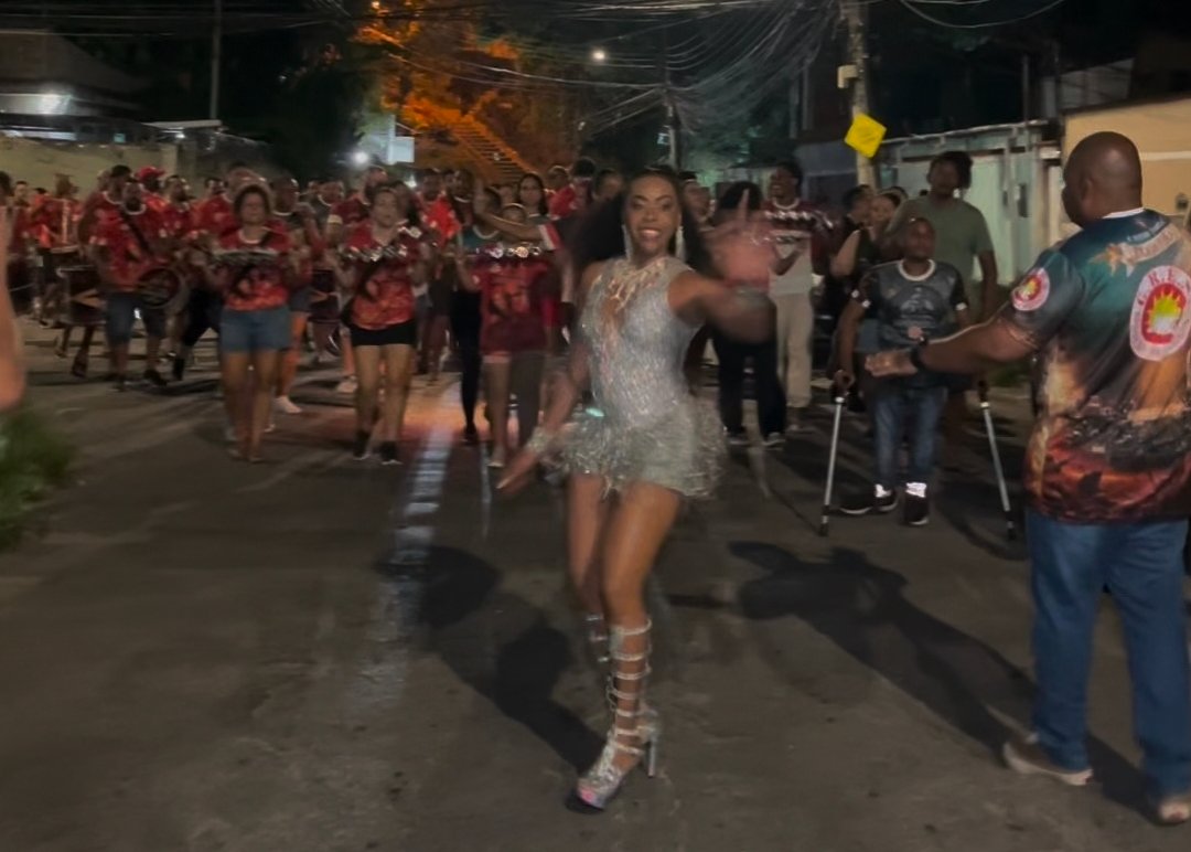 Durante o ensaio, Elaine interagiu com a comunidade e acompanhou o desempenho da bateria, que segue em preparação para o Carnaval 2026. A escola apresentará o enredo “A Divina Comédia Brasileira”, desenvolvido pelo carnavalesco Rodrigo Pacheco.